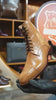 Hand crafted from cow mild leather, these cap toe derby boots strike the perfect balance between durability and sophistication. The smooth upper, highlighted by subtle brogue detailing on the toe, enhances their timeless appeal, while the tall profile with brass hooks at the top for lacing adds both function and character.
