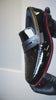These red bottom shoes include a penny style strap across the vamp, contributing to the classic loafer silhouette. The sole’s underside features a bold red leather sole adding a striking contrast with a rubber sheet on the sole. Complemented by a double-shaded heel in a captivating red-brownish and black pattern.